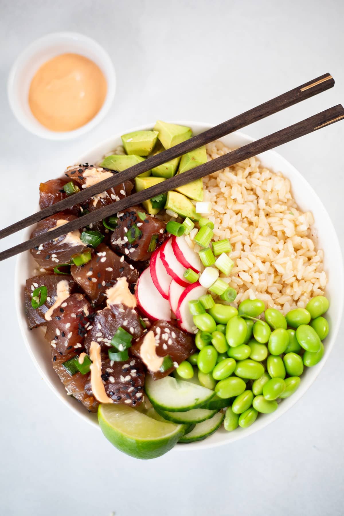 poke mayo: vegan mayonnaise, sriracha, lime, brown sugar, tamari